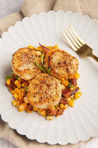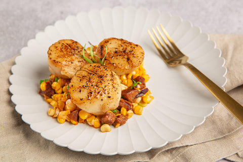 For these jewels of the sea, chorizo and corn adds the right amount of zest—ideal for your next party! The sweet, white flesh of scallops contain no protective fat, making the sous vide method perfect for ensuring even cooking throughout.